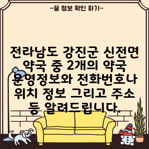 전라남도 강진군 신전면 약국 중 2개의 약국 운영정보와 전화번호나 위치 정보 그리고 주소 등 알려드립니다.