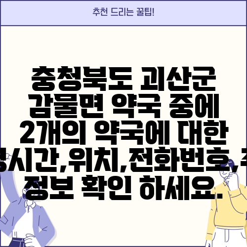 충청북도 괴산군 감물면 약국 중에 2개의 약국에 대한 운영시간,위치,전화번호,주소 정보 확인 하세요.