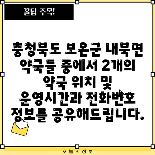 충청북도 보은군 내북면 약국들 중에서 2개의 약국 위치 및 운영시간과 전화번호 정보를 공유해드립니다.