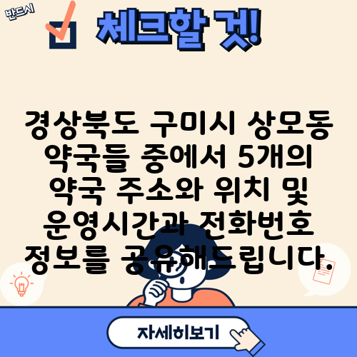 경상북도 구미시 상모동 약국들 중에서 5개의 약국 주소와 위치 및 운영시간과 전화번호 정보를 공유해드립니다.