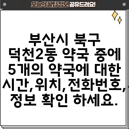 부산시 북구 덕천2동 약국 중에 5개의 약국에 대한 운영시간,위치,전화번호,주소 정보 확인 하세요.