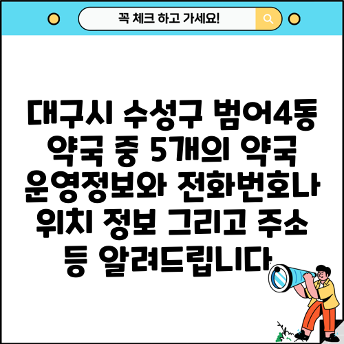 대구시 수성구 범어4동 약국 중 5개의 약국 운영정보와 전화번호나 위치 정보 그리고 주소 등 알려드립니다.
