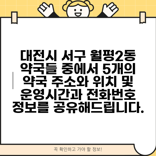대전시 서구 월평2동 약국들 중에서 5개의 약국 주소와 위치 및 운영시간과 전화번호 정보를 공유해드립니다.
