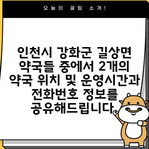 인천시 강화군 길상면 약국들 중에서 2개의 약국 위치 및 운영시간과 전화번호 정보를 공유해드립니다.
