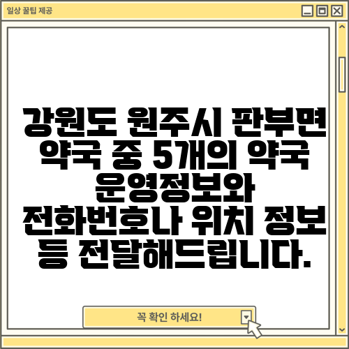 강원도 원주시 판부면 약국 중 5개의 약국 운영정보와 전화번호나 위치 정보 등 전달해드립니다.