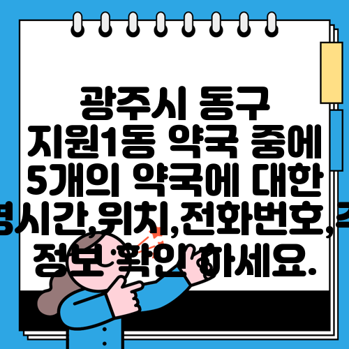 광주시 동구 지원1동 약국 중에 5개의 약국에 대한 운영시간,위치,전화번호,주소 정보 확인 하세요.