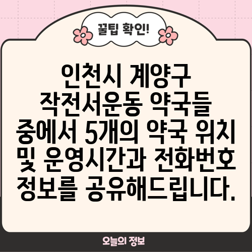 인천시 계양구 작전서운동 약국들 중에서 5개의 약국 위치 및 운영시간과 전화번호 정보를 공유해드립니다.