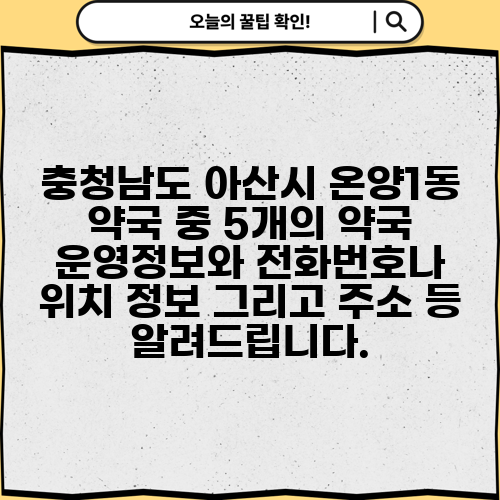 충청남도 아산시 온양1동 약국 중 5개의 약국 운영정보와 전화번호나 위치 정보 그리고 주소 등 알려드립니다.