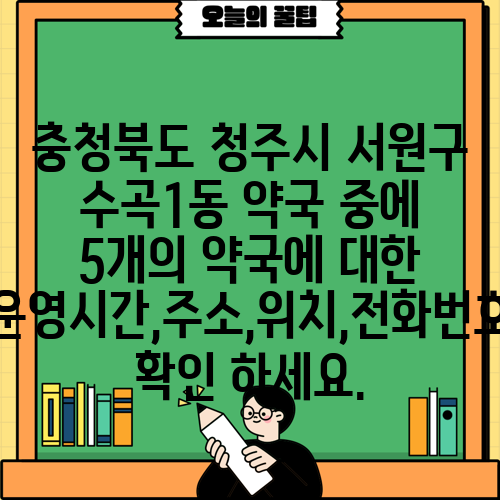 충청북도 청주시 서원구 수곡1동 약국 중에 5개의 약국에 대한 운영시간,주소,위치,전화번호 확인 하세요.