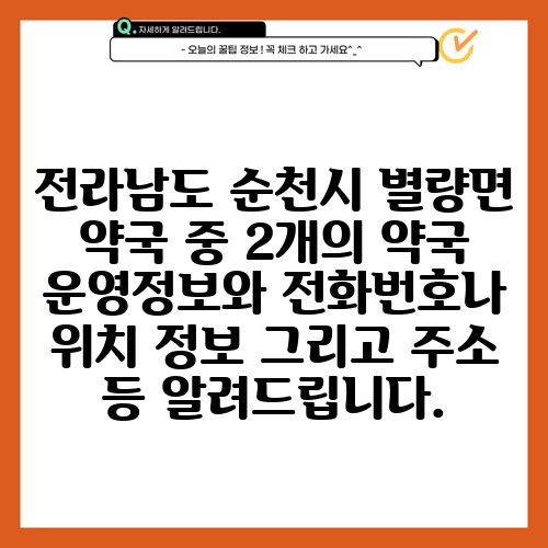 전라남도 순천시 별량면 약국 중 2개의 약국 운영정보와 전화번호나 위치 정보 그리고 주소 등 알려드립니다.