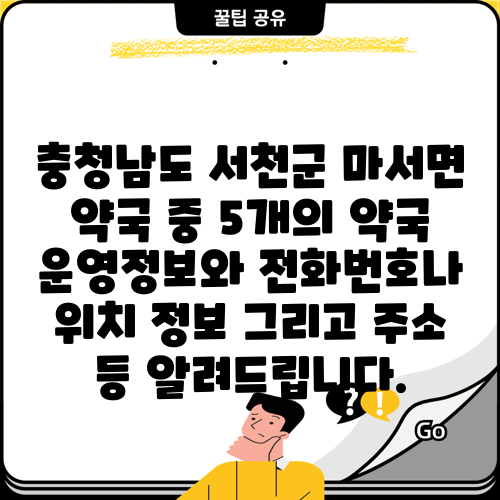 충청남도 서천군 마서면 약국 중 5개의 약국 운영정보와 전화번호나 위치 정보 그리고 주소 등 알려드립니다.