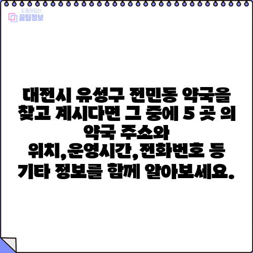 대전시 유성구 전민동 약국을 찾고 계시다면 그 중에 5 곳 의 약국 주소와 위치,운영시간,전화번호 등 기타 정보를 함께 알아보세요.