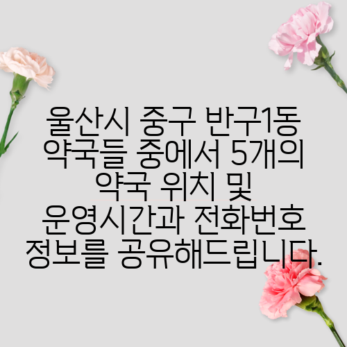 울산시 중구 반구1동 약국들 중에서 5개의 약국 위치 및 운영시간과 전화번호 정보를 공유해드립니다.