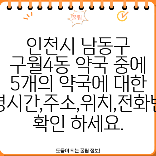 인천시 남동구 구월4동 약국 중에 5개의 약국에 대한 운영시간,주소,위치,전화번호 확인 하세요.
