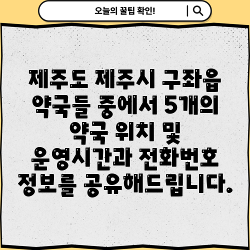 제주도 제주시 구좌읍 약국들 중에서 5개의 약국 위치 및 운영시간과 전화번호 정보를 공유해드립니다.