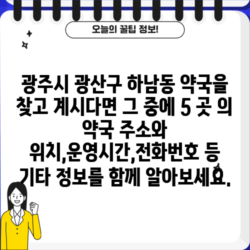 광주시 광산구 하남동 약국을 찾고 계시다면 그 중에 5 곳 의 약국 주소와 위치,운영시간,전화번호 등 기타 정보를 함께 알아보세요.