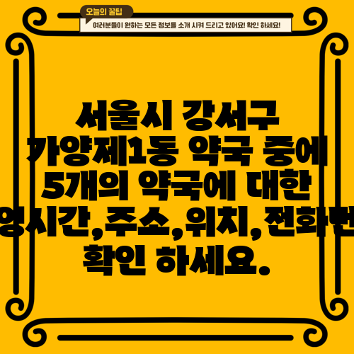 서울시 강서구 가양제1동 약국 중에 5개의 약국에 대한 운영시간,주소,위치,전화번호 확인 하세요.