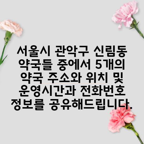 서울시 관악구 신림동 약국들 중에서 5개의 약국 주소와 위치 및 운영시간과 전화번호 정보를 공유해드립니다.