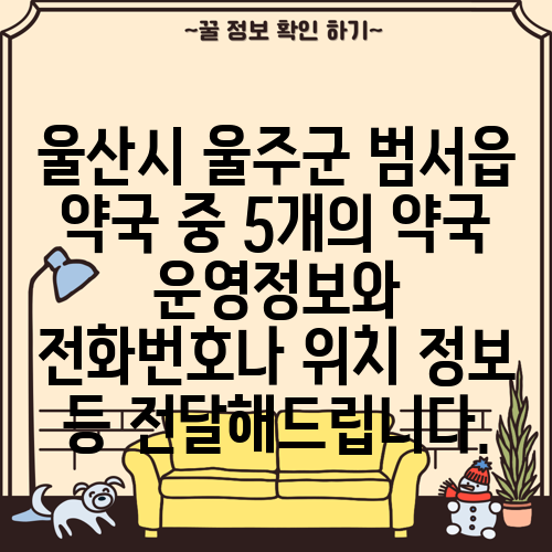 울산시 울주군 범서읍 약국 중 5개의 약국 운영정보와 전화번호나 위치 정보 등 전달해드립니다.