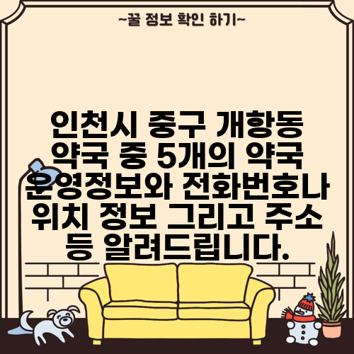 인천시 중구 개항동 약국 중 5개의 약국 운영정보와 전화번호나 위치 정보 그리고 주소 등 알려드립니다.