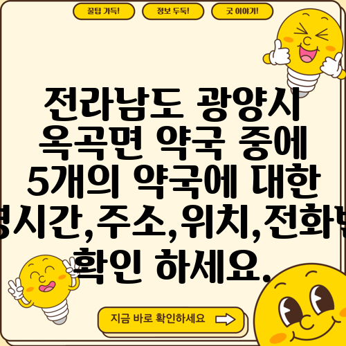 전라남도 광양시 옥곡면 약국 중에 5개의 약국에 대한 운영시간,주소,위치,전화번호 확인 하세요.