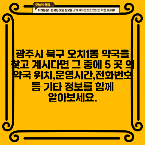 광주시 북구 오치1동 약국을 찾고 계시다면 그 중에 5 곳 의 약국 위치,운영시간,전화번호 등 기타 정보를 함께 알아보세요.