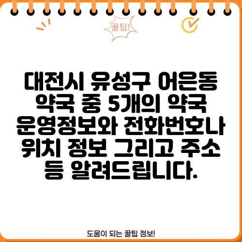 대전시 유성구 어은동 약국 중 5개의 약국 운영정보와 전화번호나 위치 정보 그리고 주소 등 알려드립니다.