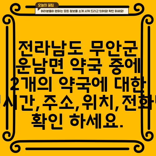 전라남도 무안군 운남면 약국 중에 2개의 약국에 대한 운영시간,주소,위치,전화번호 확인 하세요.