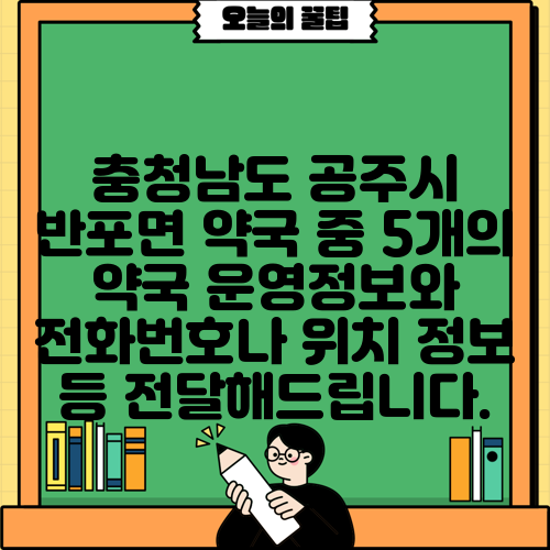 충청남도 공주시 반포면 약국 중 5개의 약국 운영정보와 전화번호나 위치 정보 등 전달해드립니다.