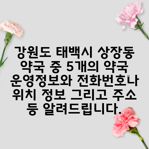 강원도 태백시 상장동 약국 중 5개의 약국 운영정보와 전화번호나 위치 정보 그리고 주소 등 알려드립니다.