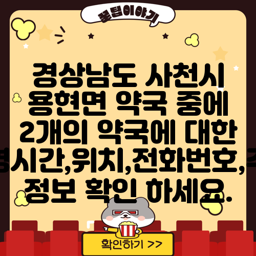 경상남도 사천시 용현면 약국 중에 2개의 약국에 대한 운영시간,위치,전화번호,주소 정보 확인 하세요.