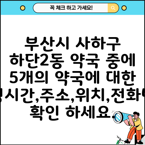 부산시 사하구 하단2동 약국 중에 5개의 약국에 대한 운영시간,주소,위치,전화번호 확인 하세요.