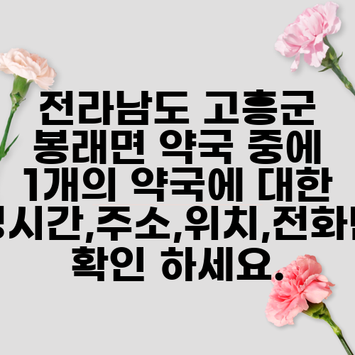 전라남도 고흥군 봉래면 약국 중에 1개의 약국에 대한 운영시간,주소,위치,전화번호 확인 하세요.