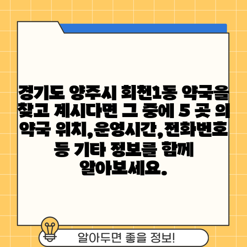 경기도 양주시 회천1동 약국을 찾고 계시다면 그 중에 5 곳 의 약국 위치,운영시간,전화번호 등 기타 정보를 함께 알아보세요.