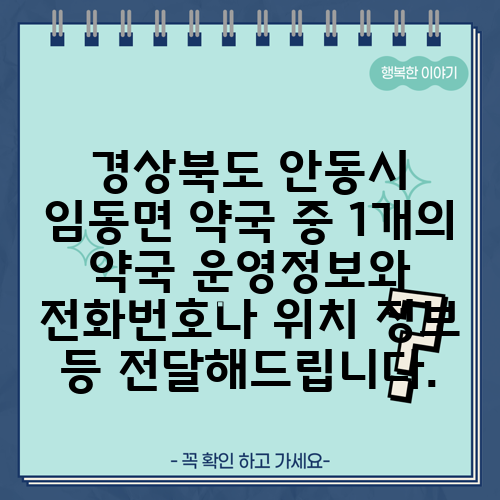 경상북도 안동시 임동면 약국 중 1개의 약국 운영정보와 전화번호나 위치 정보 등 전달해드립니다.