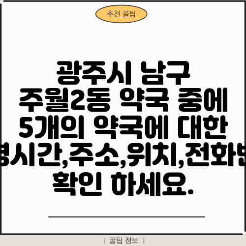 광주시 남구 주월2동 약국 중에 5개의 약국에 대한 운영시간,주소,위치,전화번호 확인 하세요.