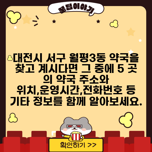 대전시 서구 월평3동 약국을 찾고 계시다면 그 중에 5 곳 의 약국 주소와 위치,운영시간,전화번호 등 기타 정보를 함께 알아보세요.