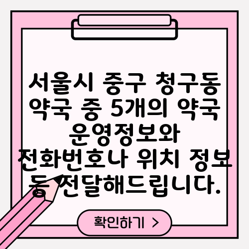 서울시 중구 청구동 약국 중 5개의 약국 운영정보와 전화번호나 위치 정보 등 전달해드립니다.
