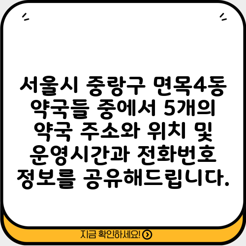서울시 중랑구 면목4동 약국들 중에서 5개의 약국 주소와 위치 및 운영시간과 전화번호 정보를 공유해드립니다.