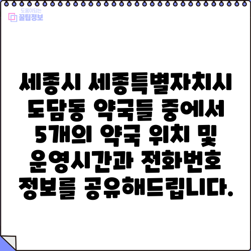 세종시 세종특별자치시 도담동 약국들 중에서 5개의 약국 위치 및 운영시간과 전화번호 정보를 공유해드립니다.