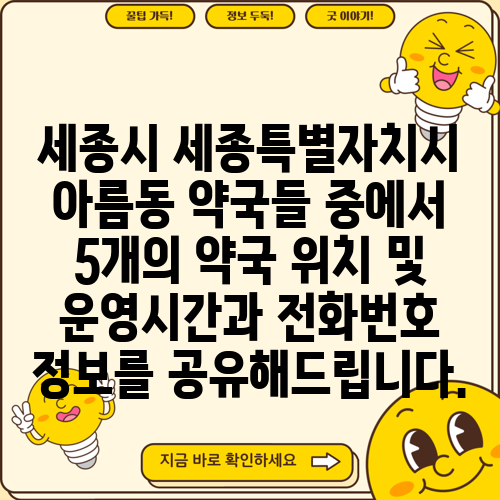 세종시 세종특별자치시 아름동 약국들 중에서 5개의 약국 위치 및 운영시간과 전화번호 정보를 공유해드립니다.