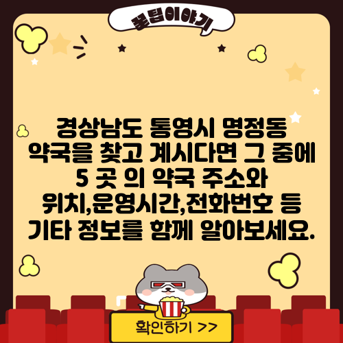경상남도 통영시 명정동 약국을 찾고 계시다면 그 중에 5 곳 의 약국 주소와 위치,운영시간,전화번호 등 기타 정보를 함께 알아보세요.