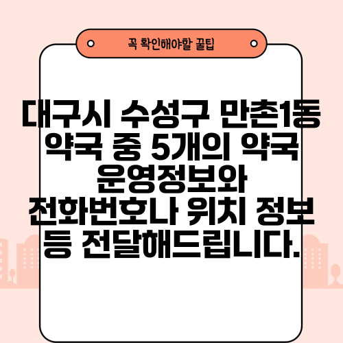 대구시 수성구 만촌1동 약국 중 5개의 약국 운영정보와 전화번호나 위치 정보 등 전달해드립니다.