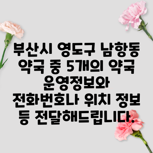 부산시 영도구 남항동 약국 중 5개의 약국 운영정보와 전화번호나 위치 정보 등 전달해드립니다.