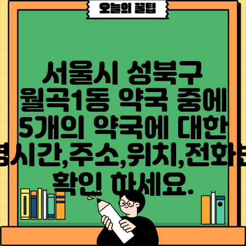 서울시 성북구 월곡1동 약국 중에 5개의 약국에 대한 운영시간,주소,위치,전화번호 확인 하세요.