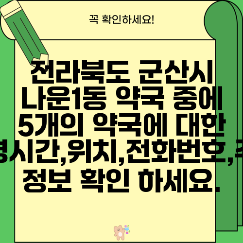 전라북도 군산시 나운1동 약국 중에 5개의 약국에 대한 운영시간,위치,전화번호,주소 정보 확인 하세요.