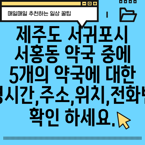 제주도 서귀포시 서홍동 약국 중에 5개의 약국에 대한 운영시간,주소,위치,전화번호 확인 하세요.