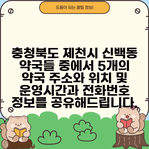 충청북도 제천시 신백동 약국들 중에서 5개의 약국 주소와 위치 및 운영시간과 전화번호 정보를 공유해드립니다.