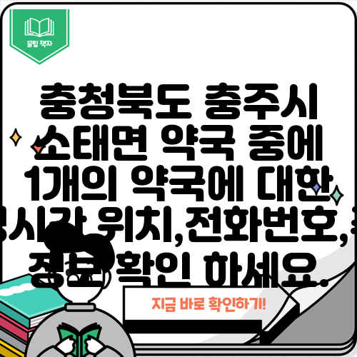 충청북도 충주시 소태면 약국 중에 1개의 약국에 대한 운영시간,위치,전화번호,주소 정보 확인 하세요.