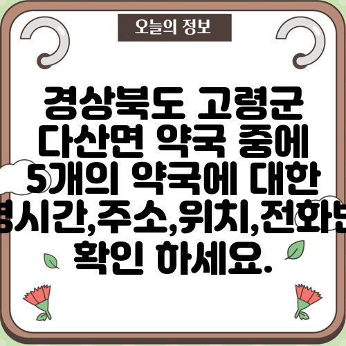 경상북도 고령군 다산면 약국 중에 5개의 약국에 대한 운영시간,주소,위치,전화번호 확인 하세요.